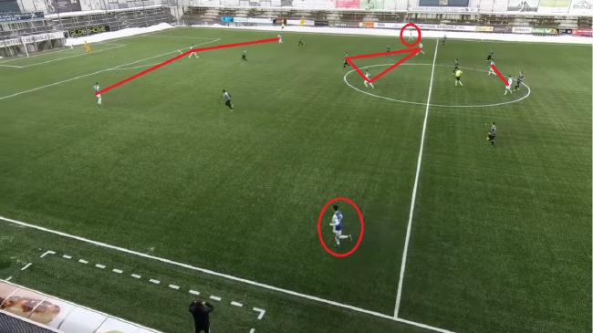 开局阶段,李磊做得还算不错,第一次触球就帮助球队衔接左侧进攻,可惜前锋处于越位位置: