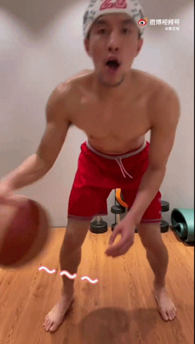 视频中,郭艾伦上身半裸、头戴花帽、手拿篮球,对着镜头说要教大家如何在运球过人中用眼神和表情迷惑对手。随后,他开始用十分搞笑的表情和夸张的动作运球。