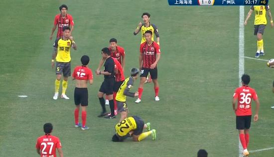 第93分钟,凌杰在对手的禁区内博得点球机会,当时他几乎将自己的身体抛出去抢点,球在经过一番反弹后打在了于海的手上,裁判吹罚点球。这球由场上最老资格的张琳芃来主罚,可惜面对昔日老队员颜骏凌,张琳芃竟一脚将球射飞,广州队错失了绝平的机会。最终只能吞下0-1输球的苦果,被海港反超拿到联赛第三结束本赛季。