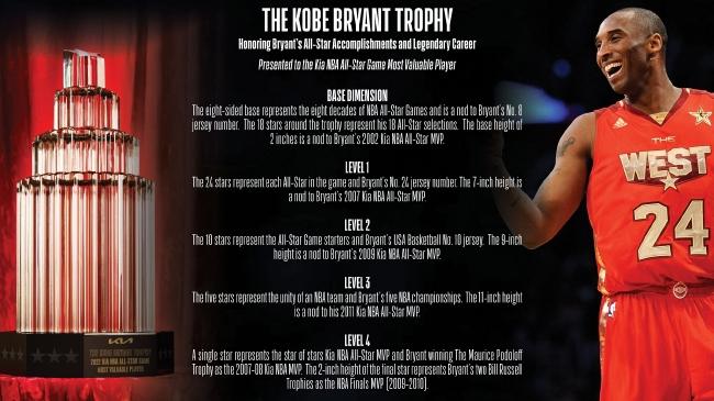 NBA官方两年前就已将全明星MVP改称为科比-布莱恩特MVP,但奖杯还延续此前的设计,今年NBA官方正式推出了新的奖杯设计,以此来纪念已故NBA巨星科比-布莱恩特。