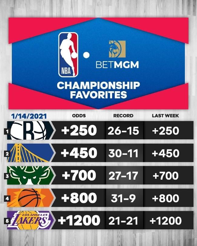 最新总冠军赔率:篮网仍居榜首 勇士第2湖人第5