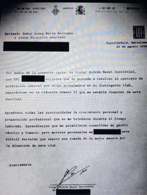 梅西长时间累积的不满爆发,他在2020年8月公开表示:我想离开俱乐部。并通过那份著名的传真向巴萨高层发出了离队通知,梅西认为,俱乐部主席巴托梅乌无法帮助到俱乐部。