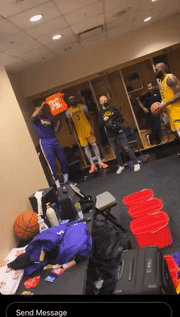 在湖人更衣室里,里维斯刚走进门,詹姆斯第一时间把比赛用球扔给这位小将,小乔丹躲在门口,把一大桶水都浇在里维斯的头上。