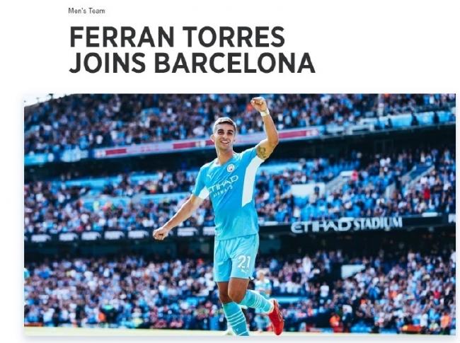 2020年,曼城以3400万欧元的价格签下托雷斯。费兰-托雷斯共代表曼城出场43次,打进16球并送出5记助攻。本赛季,费兰-托雷斯因伤仅为曼城出战7场比赛,打入3球送出1次助攻。