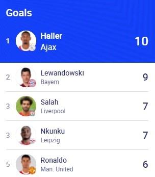 欧冠小组赛射手榜:妖人10球居首 莱万9球第二