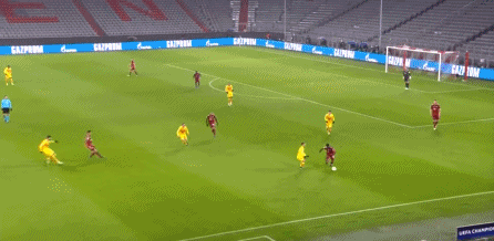 萨内的远射固然精彩,然而在那之前,拉边协防的布斯克茨被科曼轻松晃开,让拜仁将进攻从逼仄的右边路,顺利发展到了开阔的中路,由此便有了萨内的这脚世界波。