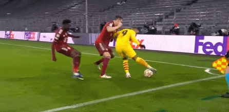 0-0的时候,或者严格来说,比赛前25分钟的巴萨,还是打出了一些进攻威胁,尤其以登贝莱领衔的左路为主,还是考验到了拜仁的后防线: