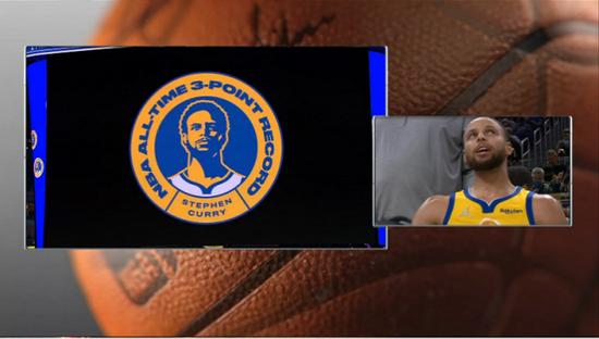 在今天比赛进行到第一个长暂停的时候,勇士队现场播放了致敬库里登顶NBA历史三分王的视频。在视频中,勇士队主帅科尔,库里的队友汤普森,格林等人均表达了对库里的祝贺。