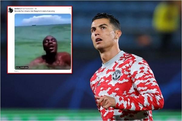 然而,一些球迷开始担心C罗,认为不清楚这位葡萄牙巨星多能否适应朗尼克的比赛风格。朗尼克一直追求高位逼抢,这对36岁的C罗来说可能不太容易。一名球迷制作了一幅有人在水中挣扎的动图,嘲笑C罗在踢了5分钟后,已经在喊救命了。