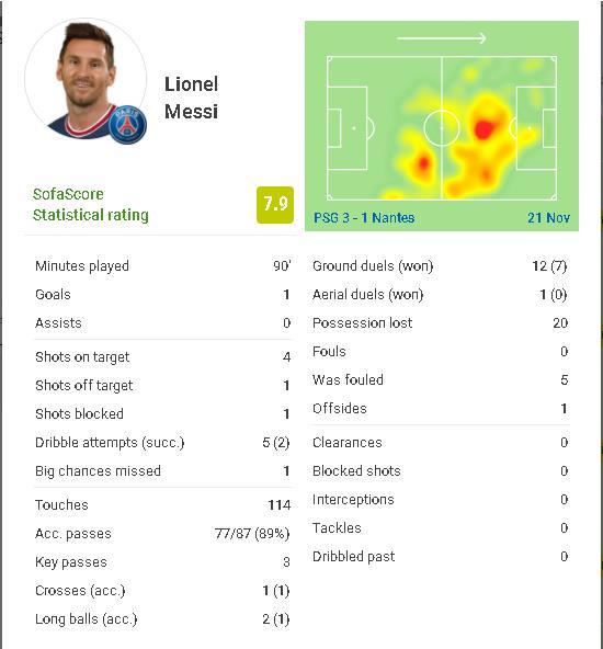 北京时间周日凌晨,巴黎圣日耳曼在法甲比赛中3比1击败南特,,梅西除了让对方球员制造一个乌龙球外,还打入了自己在法甲的处子球,赛后他获得了评分网站给出的7.9分,仅次于姆巴佩。