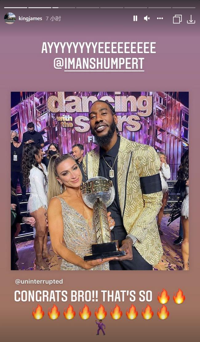 其中,在凌晨十二点,他更新了多条动态祝贺老队友伊曼-香波特在综艺节目《与星共舞》里夺冠。