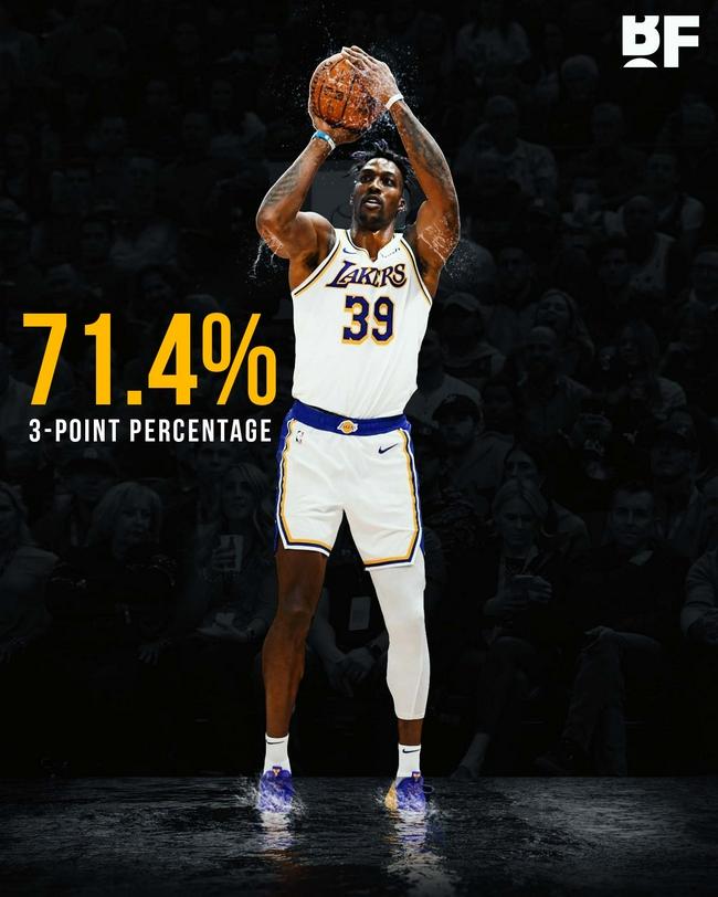 北京时间11月24日,据美媒Basketball Forever报道,湖人中锋德怀特-霍华德本赛季的三分命中率达到71.4%,联盟最高(至少出手5次三分)。
