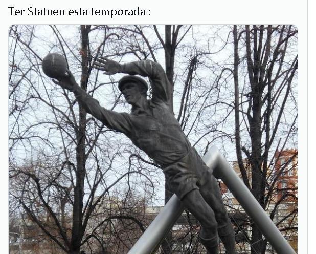 还有球迷贴出了一个门将的雕塑,并表示这就是特尔施特根。值得一提的是,“特尔雕塑”还一度成为西班牙的热门话题。