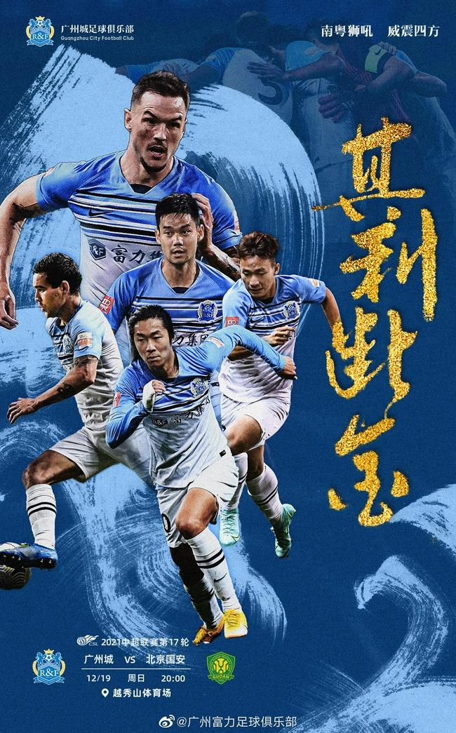 12月19日,中超争冠组第17轮,广州城对阵北京国安。赛前双方公布出场阵容。