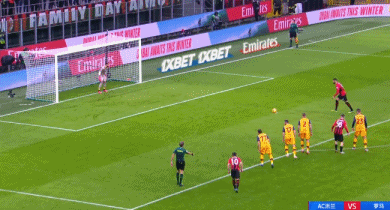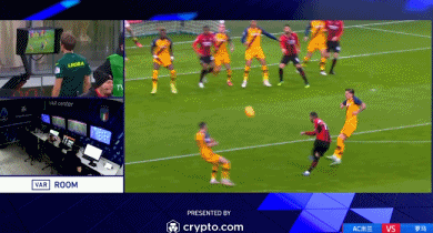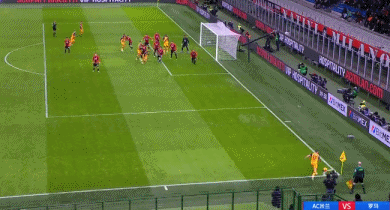 上半场比赛第4分钟,梅西亚斯角球传中被解围,特奥禁区前沿抽射攻门,皮球被亚伯拉罕碰了一下后被帕特里西奥扑出。随后主裁判亲自到场边确认VAR,判罚点球并黄牌警告了手球的亚伯拉罕,吉鲁主罚点球命中,米兰1-0领先。
