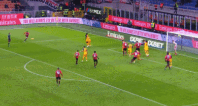 第16分钟,伊巴涅斯后场回传门将失误被吉鲁断球,吉鲁禁区右侧小角度推射攻门,皮球击中球门柱后弹出,梅西亚斯及时跟上补射破门,米兰2-0领先。