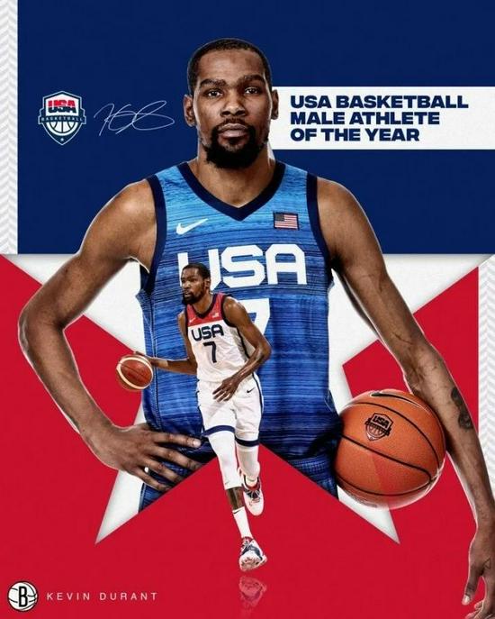 再加上上赛季季后赛的杰出表现和奥运会上率领美国队夺冠的成就,杜兰特生涯第三次被评为年度美国篮球最佳男运动员。